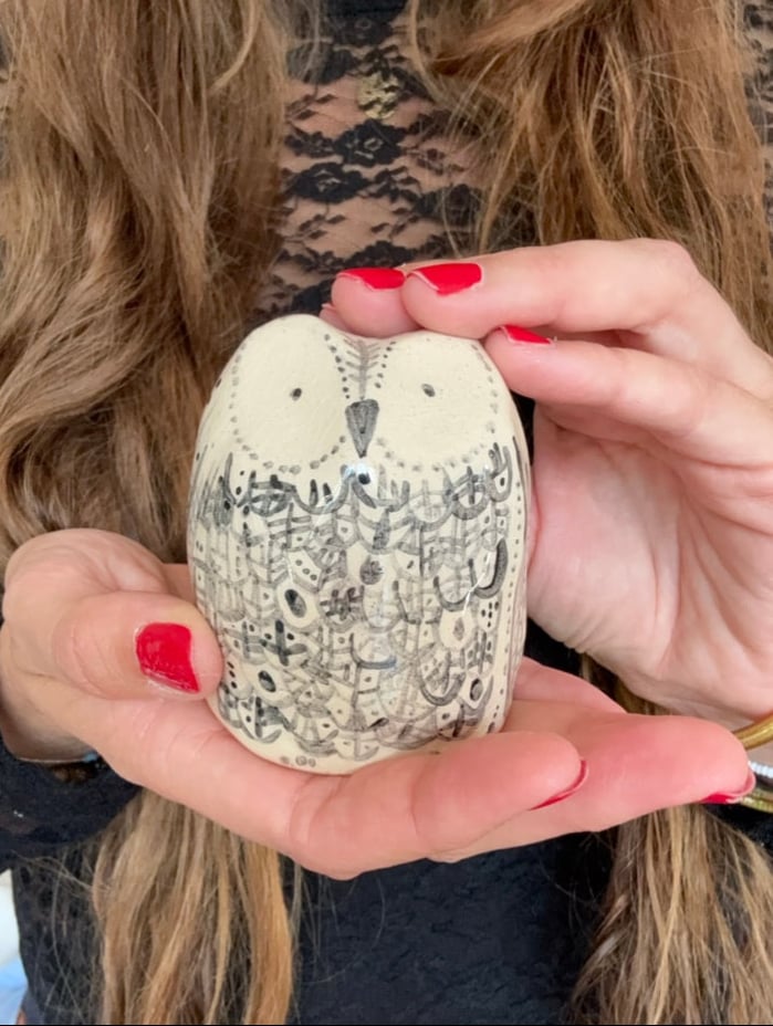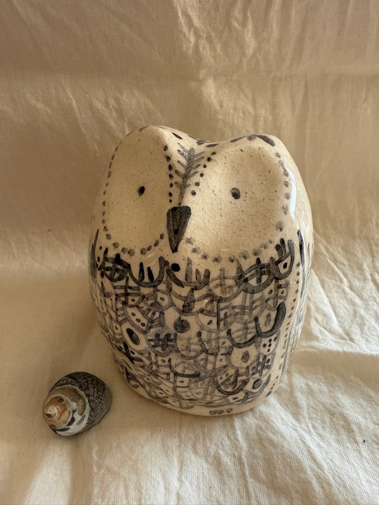 Voici un nouvel objet porte bonheur : une chouette Nuit Noire en céramique, faite et peinte à la main.