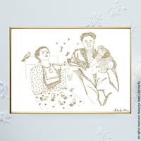 Illustration d'un moment entre Frida Kahlo & Diego Rivera, reproduite à la sérigraphie à l'encre dorée