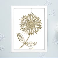 An illustration of a *Sunflower*, screen-printed in gold ink.