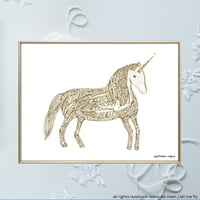 Illustration d'une licorne imprimée à la sérigraphie en doré
