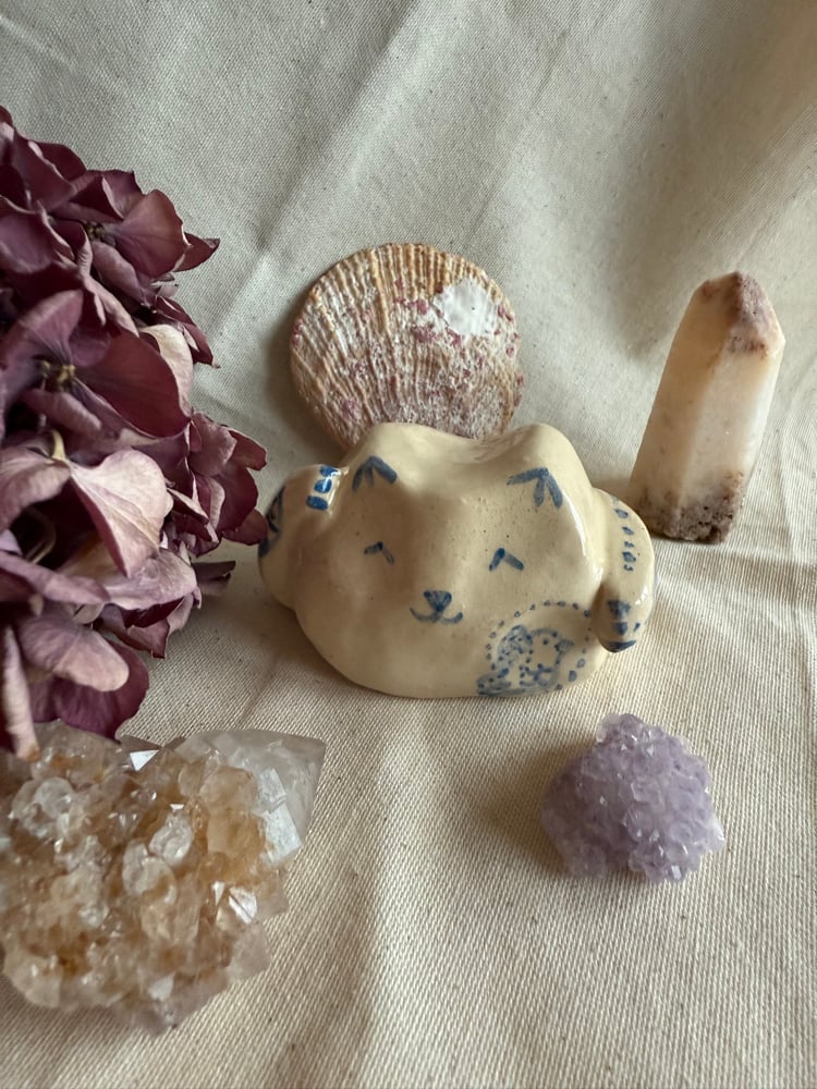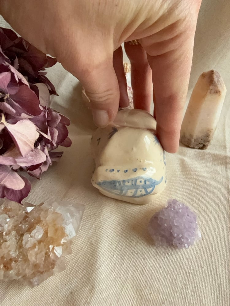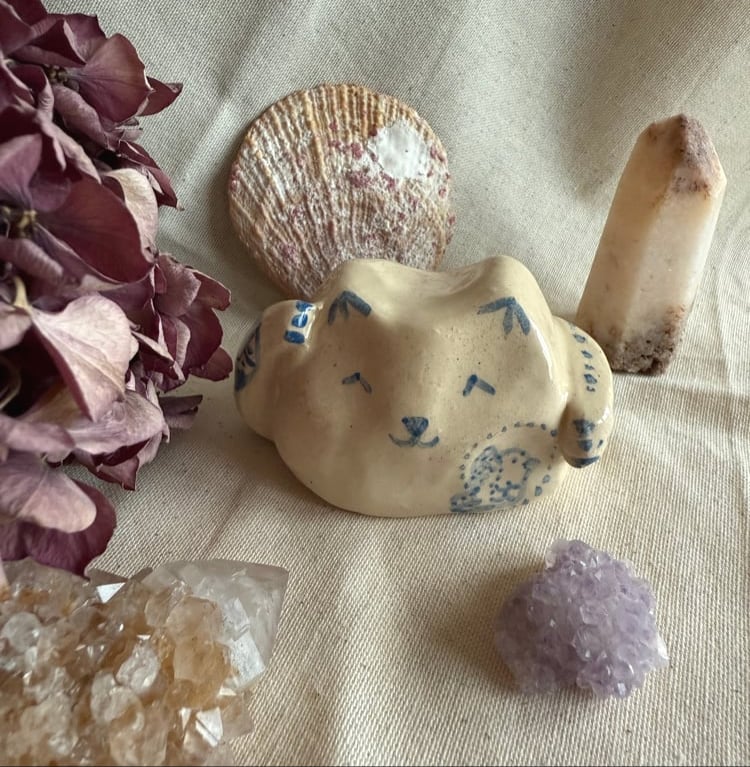 Sous le petit chat, j'ai créé un espace vide pour qu'il puisse y avoir une pierre porte-chance, ou encore un petit mot, une intention que vous souhaitez.