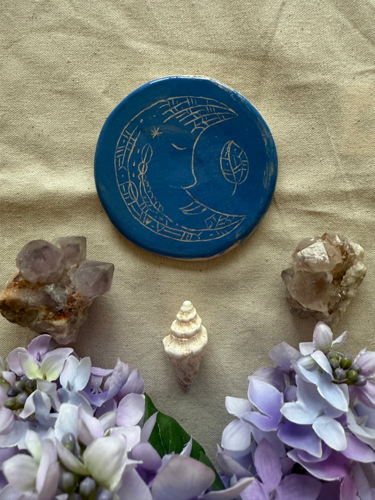 Grand sous-plat en céramique avec une Lune gravée.