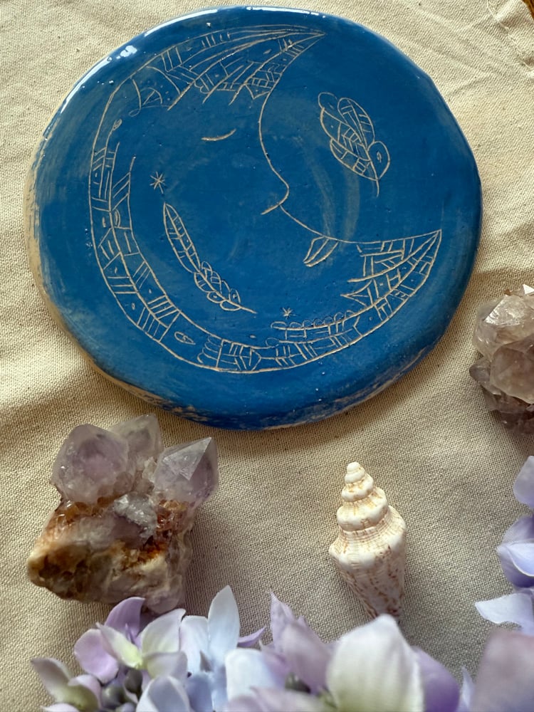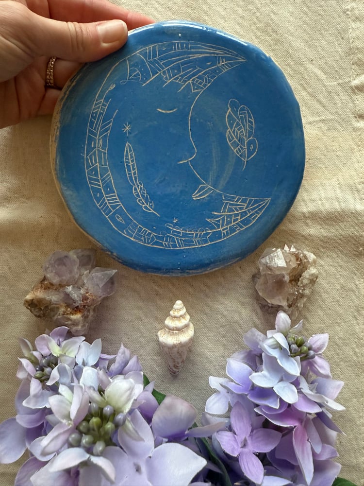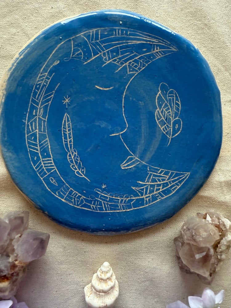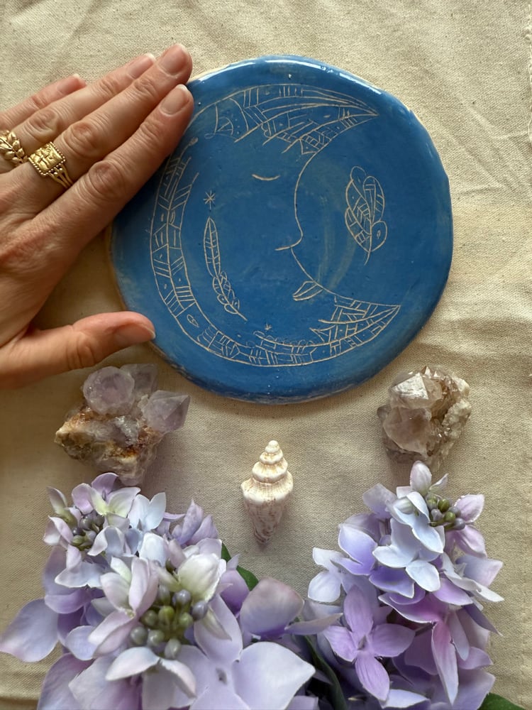 Nés entre mes mains, ces sous-plats en céramique sont façonnés et peints un à un, lentement, comme on confie un vœu à la matière.